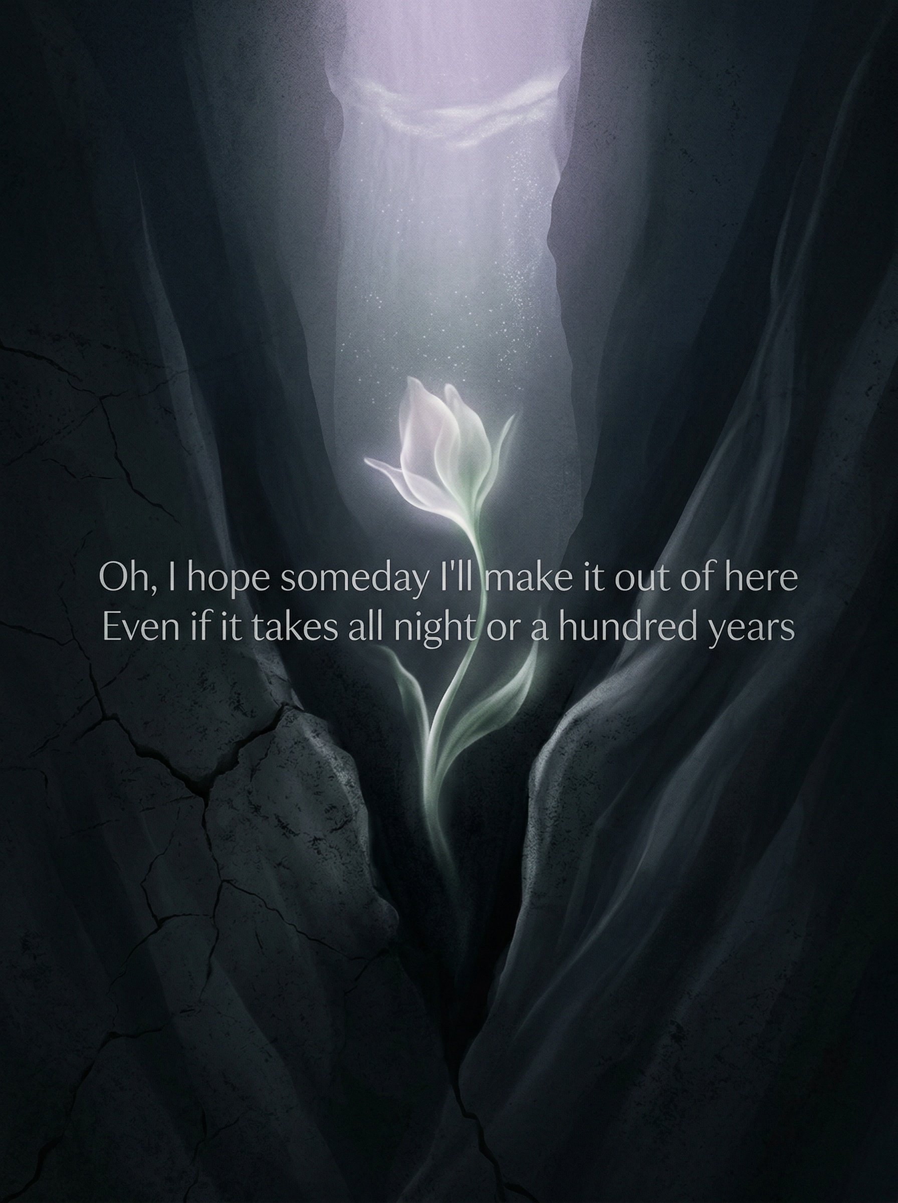 "Oh, I hope someday I'll make it out of here / Even if it takes all night or a hundred years"