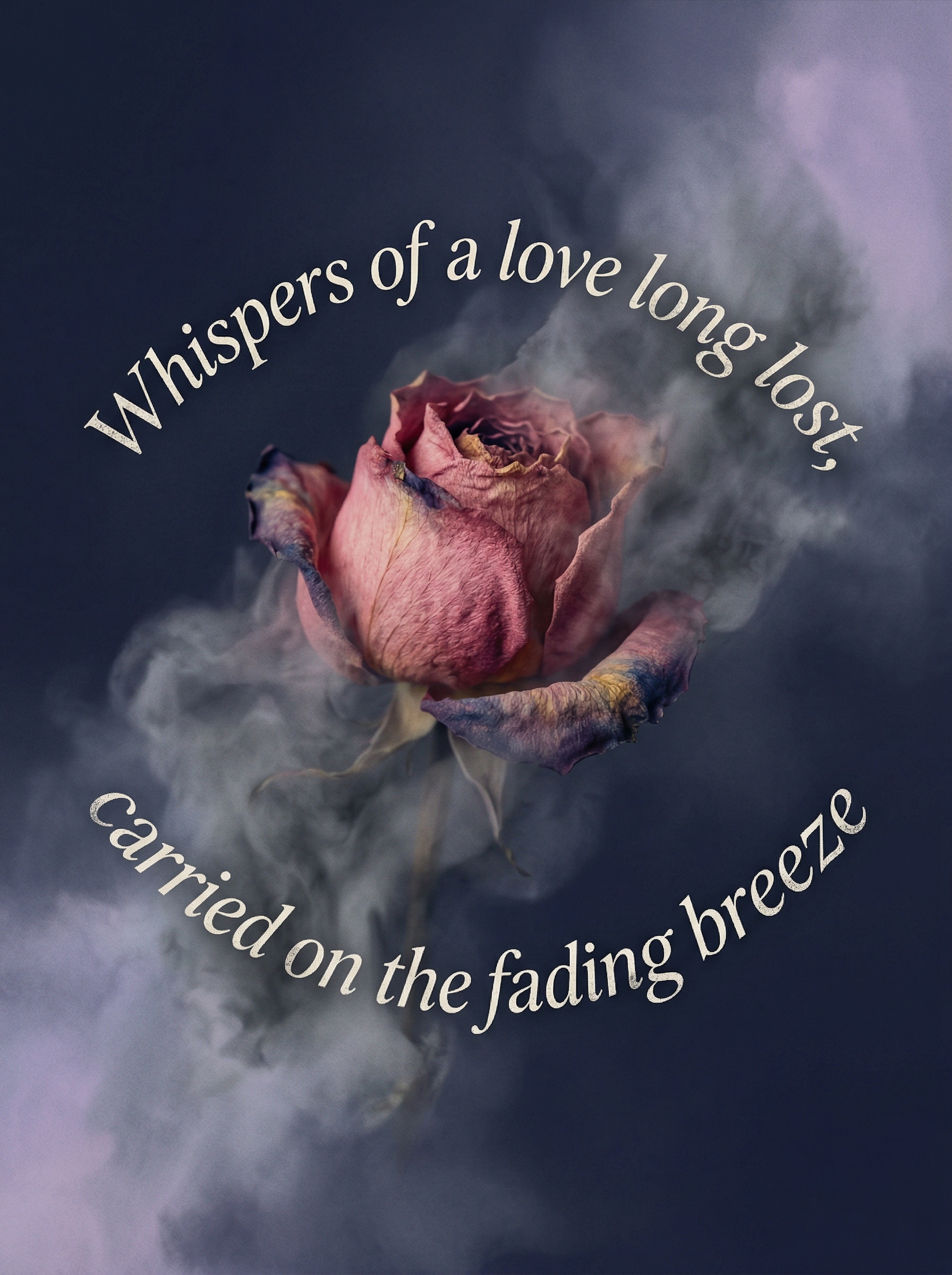 This artwork captures the Wistful, Ethereal Melancholy mood of Crimson Bloom's "Fading Embers", specifically exploring themes of Loss and Memory. Drawing from Late 90s / Early 2000s alternative rock, post-grunge introspection with gothic undertones. Alternative Rock / Dream Pop aesthetics, the design features Ethereal yet grounded, blending soft focus with raw textures. Evokes vintage melancholy, dreamlike states, and atmospheric depth with a subtle, dark romanticism. visuals with a palette of Smoky Charcoal, Faded Rose, Deep Indigo.