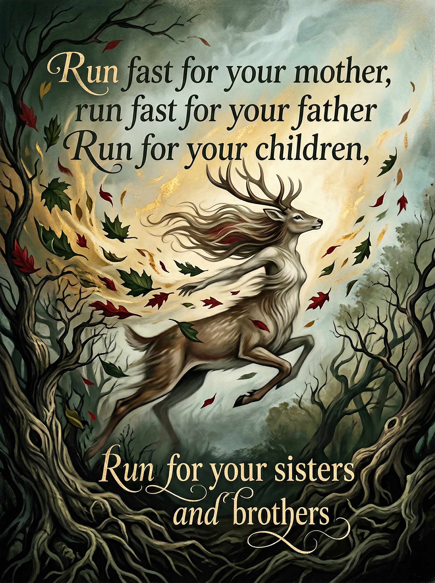 "Run fast for your mother, run fast for your father Run for your children, for your sisters and brothers"