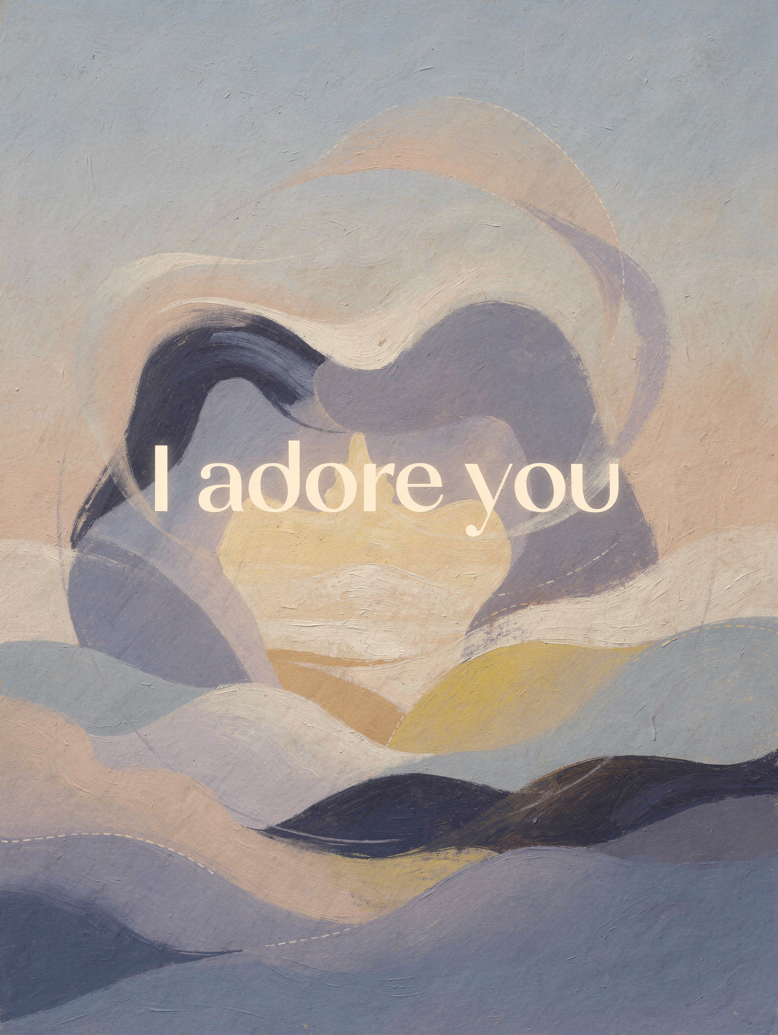 This artwork captures the tender and euphoric mood of fred again's "adore u", specifically exploring themes of love and adoration. Drawing from modern electronic electronic aesthetics, the design features dreamy, ethereal, warm, abstract shapes, soft gradients, natural light, reminiscent of dawn or dusk visuals with a palette of sky blue, soft peach, lavender.