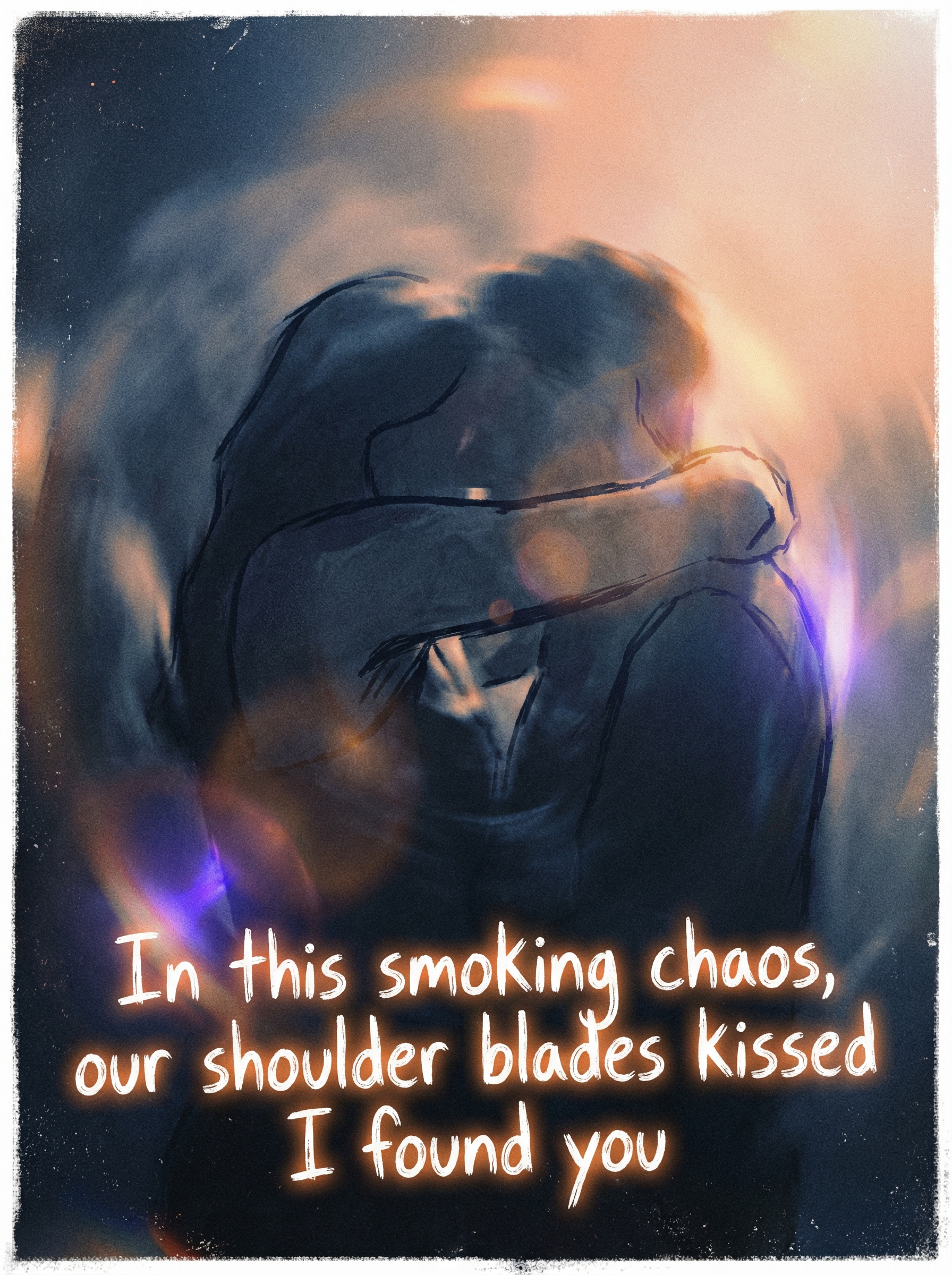 "In this smoking chaos, our shoulder blades kissed I found you"