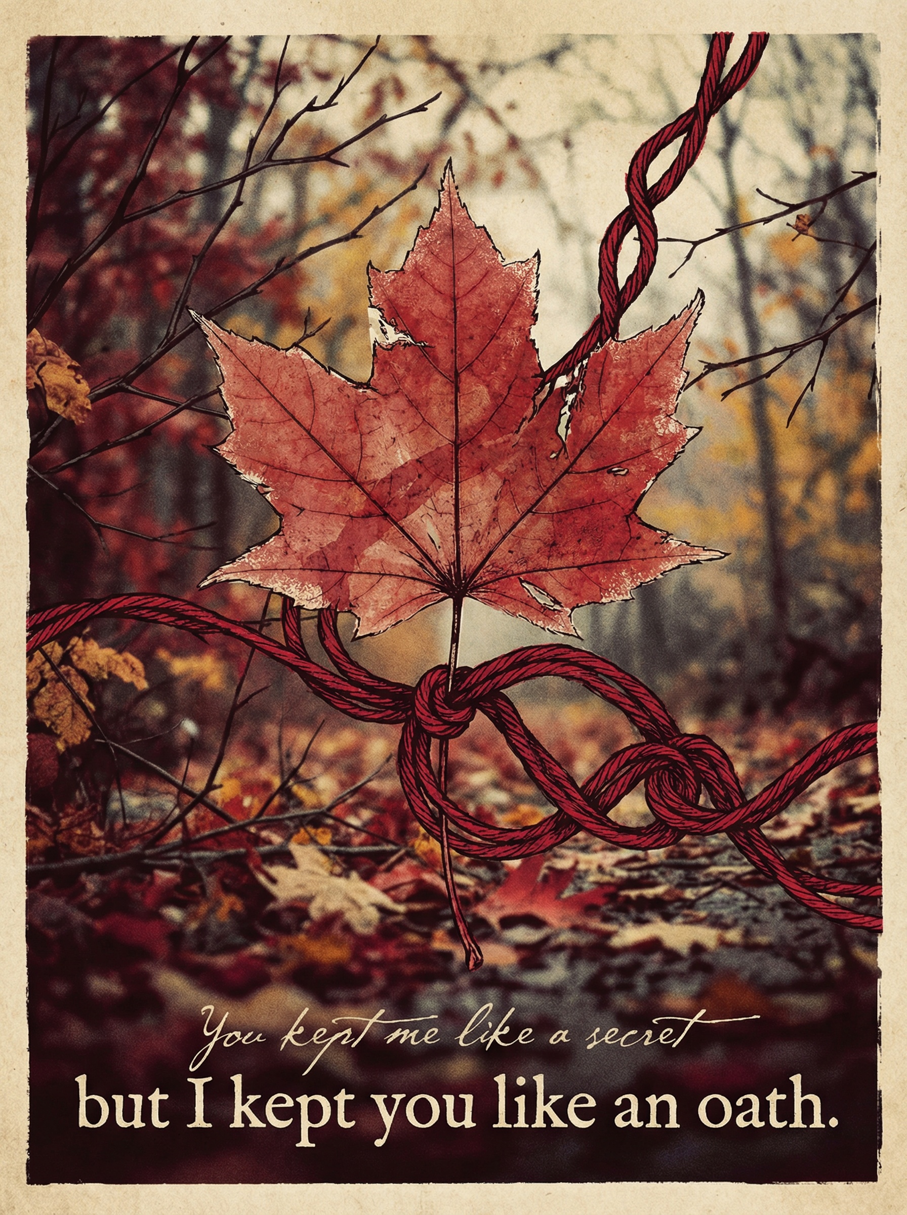 This artwork captures the Poignant Betrayal mood of Taylor swift's "All too well", specifically exploring themes of Unrequited Devotion and Hidden Love. Drawing from Early 2010s heartbreak pop-country narrative, specifically the 'Red' album era's transition from country to pop. Pop, Singer-Songwriter aesthetics, the design features Evocative, painterly realism with a melancholic, vintage filter, emphasizing warmth and fading memories, like an aged photograph or cherished diary entry. visuals with a palette of Deep Crimson, Burnt Sienna, Muted Gold.