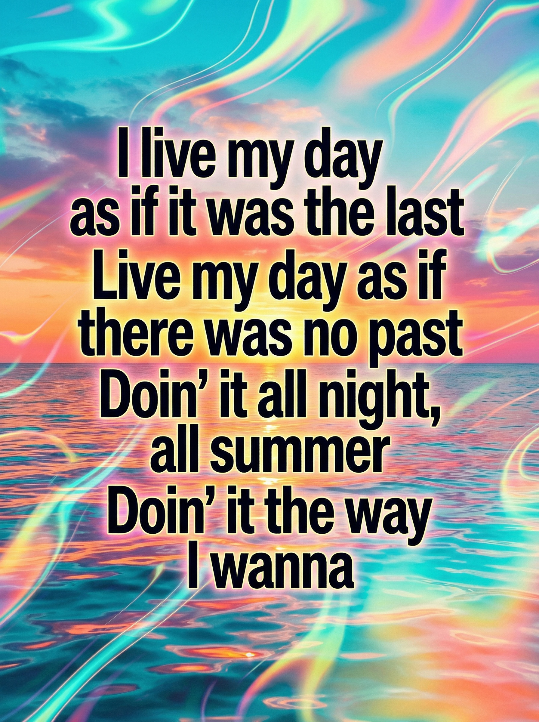 "I live my day as if it was the last Live my day as if there was no past Doin' it all night, all summer Doin' it the way I wanna"